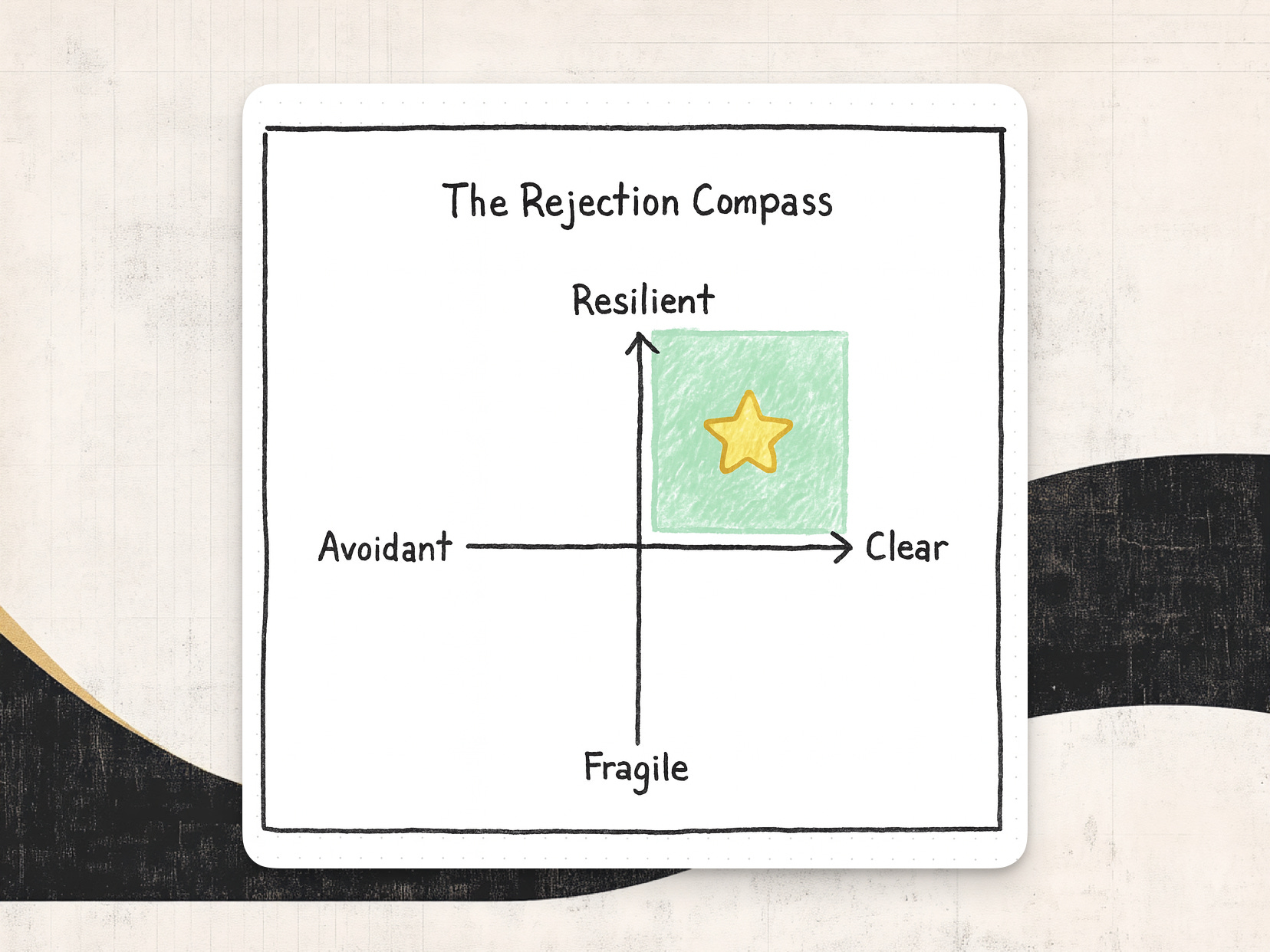 Think of rejection as a compass with two axes: how you take it (resilient vs. fragile) and how you give it (clear vs. avoidant).